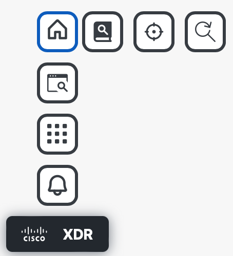 In a collapsed view, by default, the Open the Ribbon floating button is located in the bottom left corner of the page, and it persists as you move between the Cisco XDR pages in your environment. Hover over the Open the Ribbon floating button to display the ribbon icons.